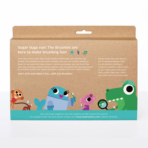 This finger toothbrush set includes a copy of The Brushies Book – bursting with helpful tips from The Brushies buddies to help make brushing fun for your child.