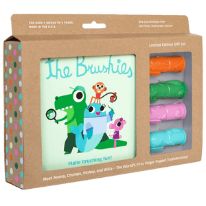 We absolutely love our brushies. They are a fun way to teach our 10 month old to clean her teeth. We love reading the book as a family and playing with the finger puppets. We have recommended this product to our friends.